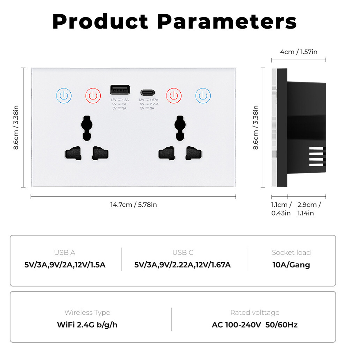 - 4-in-1 Multi-Function Design: Universal socket + USB + Type-C ports + Smart WiFi control